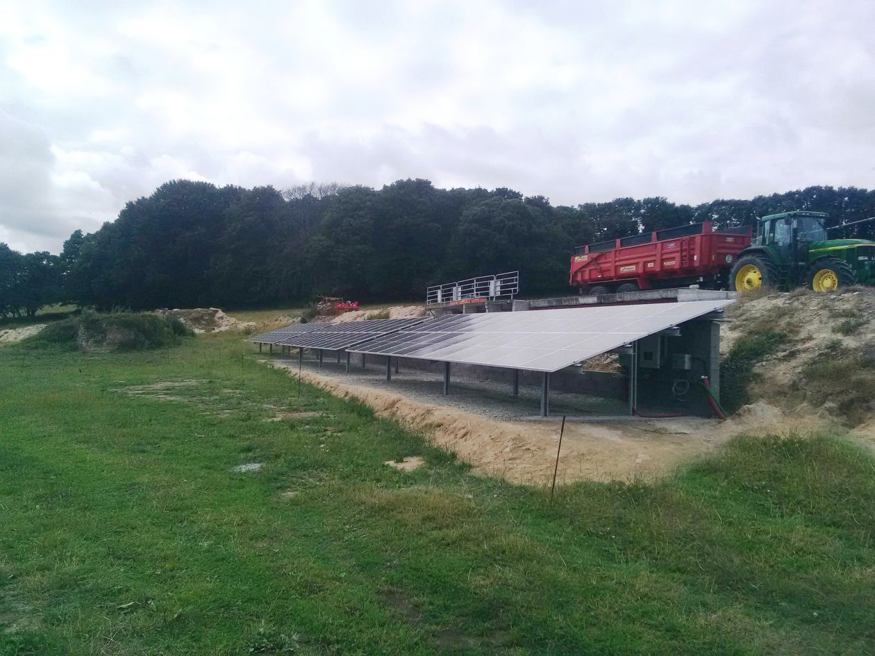 Quénéa a développé l'offre Solheol Pro sur une exploitation porcine située à Bourbriac qui a bénéficié de cette première forme d’accompagnement dans le cadre d’une installation de 21 kWc / 150m² sur un délaissé agricole.