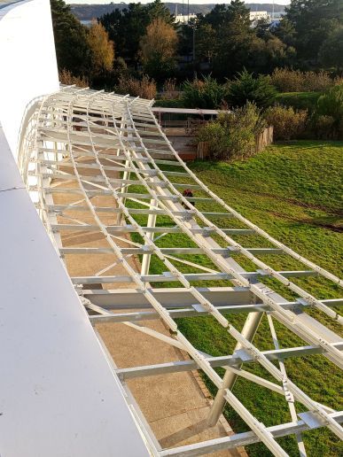 La maitrise de Quénéa dans la mise en oeuvre de technologies de panneaux et de structures installées en bord de mer, lui confère une expertise globale dans le domaine. En effet l’ensemble des installations devaient résister au vent et embruns de ce site situé dans la rade de Brest.