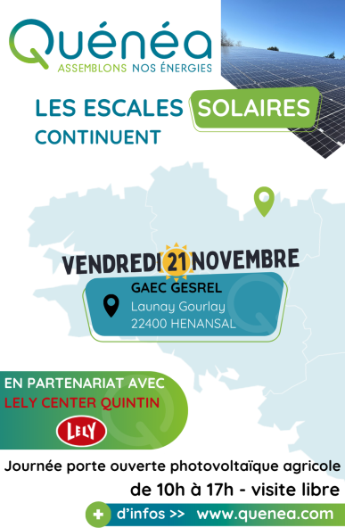 Quénéa vous présentera les installations photovoltaïques réalisées sur l'exploitation :